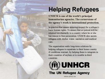 Helping Refugees UNHCR is one of the worlds