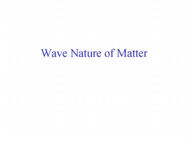 <Notice: Removed> Wave Nature of Matter PowerPoint PPT Presentation