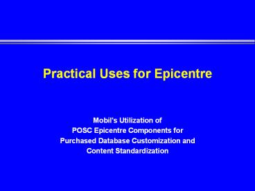 1Practical Uses for Epicentre