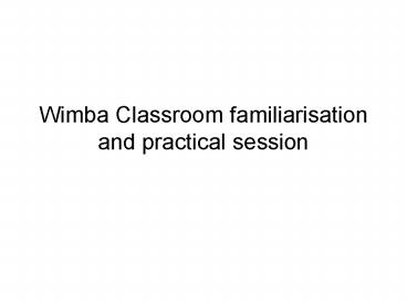 Title: Wimba Classroom familiarisation and practical session