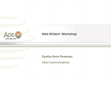 Web Writers Workshop PowerPoint PPT Presentation
