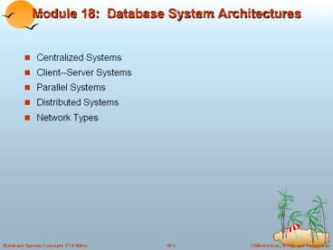 Module 18: Database System Architectures PowerPoint PPT Presentation
