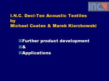 I.N.C. Deci-Tex Acoustic Textiles by Michael Coates PowerPoint PPT Presentation