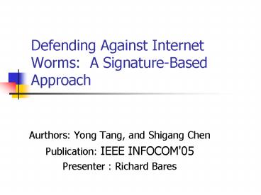 <Notice: Removed> Defending Against Internet Worms: A SignatureBased Approach PowerPoint PPT Presentation
