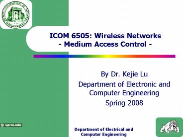 Title: ICOM 6505: Wireless Networks Medium Access Control