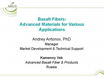 Basalt Fibers: Advanced Materials for Various Applications PowerPoint PPT Presentation