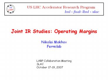 Title: Joint IR Studies: Operating Margins Nikolai Mokhov Fermilab