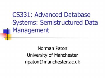 <Notice: Removed> CS331: Advanced Database Systems: Semistructured Data Management PowerPoint PPT Presentation