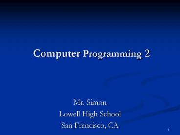 1 Computer Programming 2