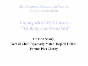 Bereavement Counselling Service Carers Association PowerPoint PPT Presentation