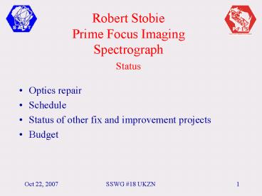 Robert Stobie Prime Focus Imaging Spectrograph Status PowerPoint PPT Presentation