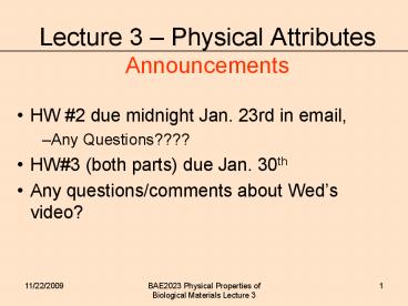 4Lecture 3 Physical AttributesChpt 2, Pages 11-20