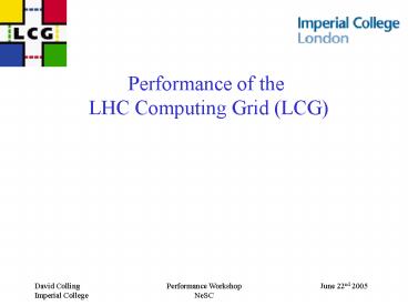 1Performance of the LHC Computing Grid (LCG)