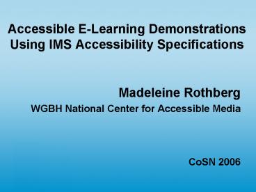 Accessible ELearning Demonstrations Using IMS Accessibility Specifications PowerPoint PPT Presentation