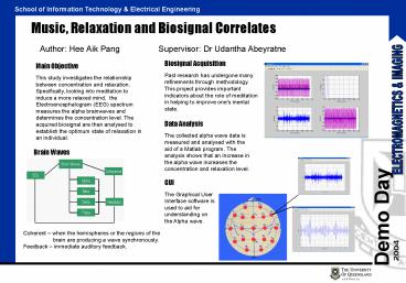 ... spectrum measures the alpha brainwaves and determines the concentration level. ... Brain Waves. Coherent when the hemispheres or the regions of the ... – PowerPoint PPT presentation
