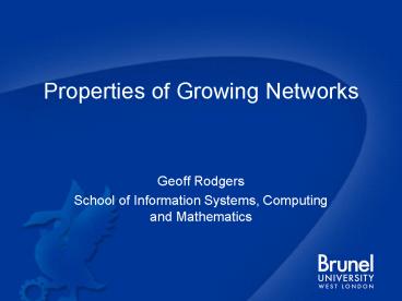 1Properties of Growing Networks