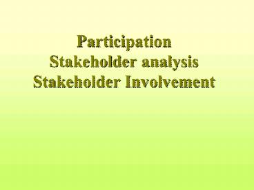 Title: Participation Stakeholder analysis Stakeholder Involvement