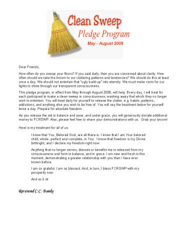 in turn, I bless FCRSWP with my prosperity