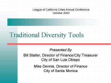 Traditional Diversity Tools PowerPoint PPT Presentation