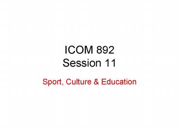 ICOM 892 Session 11 PowerPoint PPT Presentation