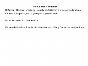 Title: Porous Media Filtration
