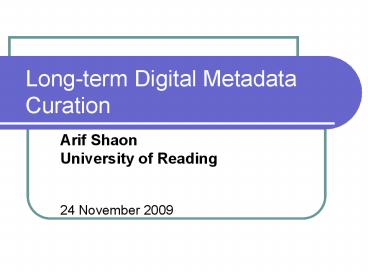 metadata systems. - My PhD proposes a standalone Metadata Curation