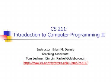 CS 211: Introduction to Computer Programming II PowerPoint PPT Presentation