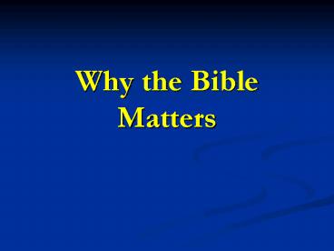 Why the Bible Matters PowerPoint PPT Presentation