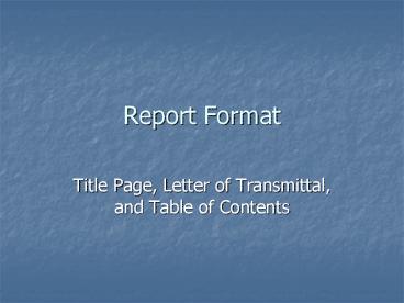 Report Format PowerPoint PPT Presentation