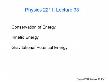 Physics 2211: Lecture 33 PowerPoint PPT Presentation