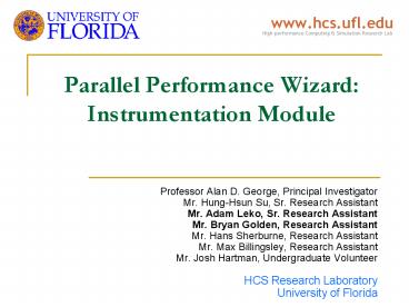 <Notice: Removed> Parallel Performance Wizard: Instrumentation Module PowerPoint PPT Presentation