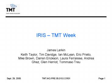 Title: IRIS TMT Week
