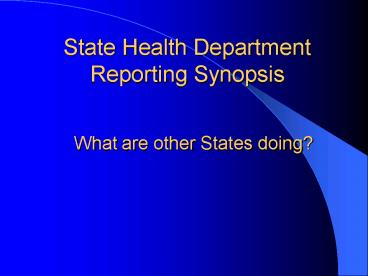 State Health Department Reporting Synopsis PowerPoint PPT Presentation