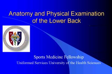 Title: Anatomy and Physical Examination of the Lower Back