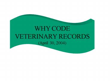 WHY CODE VETERINARY RECORDS (April 30, 2004)