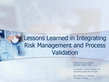 Title: Lessons Learned in Integrating Risk Management and Process Validation