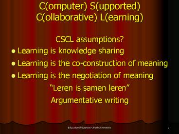 <Notice: Removed> Computer Supported Collaborative Learning PowerPoint PPT Presentation