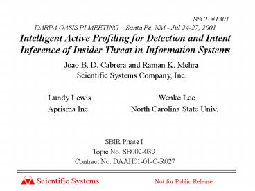 1 SSCI 1301DARPA OASIS PI MEETING Santa Fe, NM