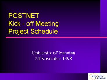 Title: POSTNET Kick off Meeting Project Schedule