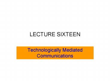 LECTURE SIXTEEN PowerPoint PPT Presentation