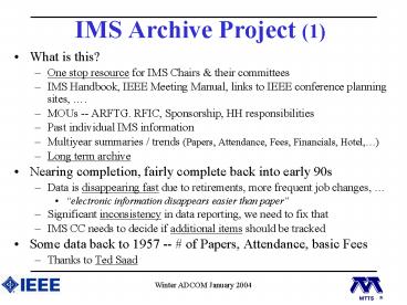 IMS Archive Project 1 PowerPoint PPT Presentation