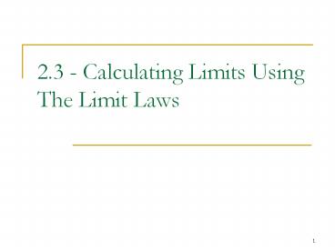 <Notice: Removed> 2.3 - Calculating Limits Using The Limit Laws PowerPoint PPT Presentation