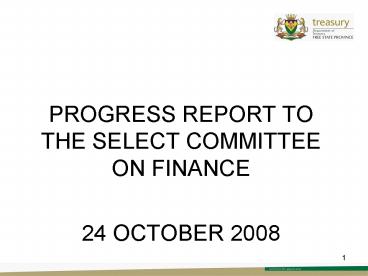 PROGRESS REPORT TO THE SELECT COMMITTEE ON FINANCE PowerPoint PPT Presentation
