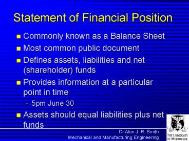 Title: Statement of Financial Position