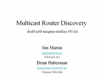Multicast Router Discovery draft-ietf-magma-mrdisc-00.txt PowerPoint PPT Presentation