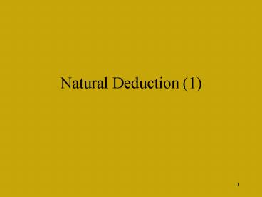 Natural Deduction 1 PowerPoint PPT Presentation