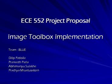 ECE 552 Project Proposal Image Toolbox Implementation PowerPoint PPT Presentation