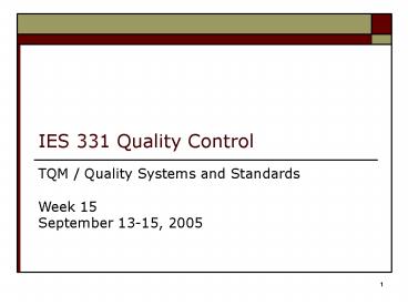 IES 331 Quality Control PowerPoint PPT Presentation