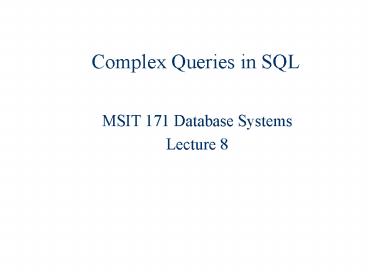 Complex Queries in SQL PowerPoint PPT Presentation