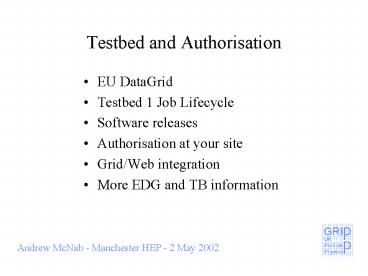 Testbed and Authorisation PowerPoint PPT Presentation